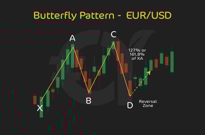Point D is the potential reversal zone, and finding it correctly is crucial for this pattern to work in your favor. Most traders use Fibonacci extensions and retracements to make sure they are watching this area.